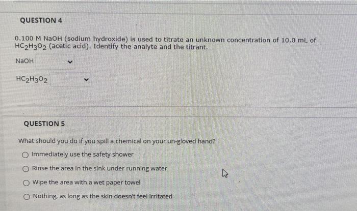 Solved Question 4 0 100 M Naoh Sodium Hydroxide Is Used To Chegg Com